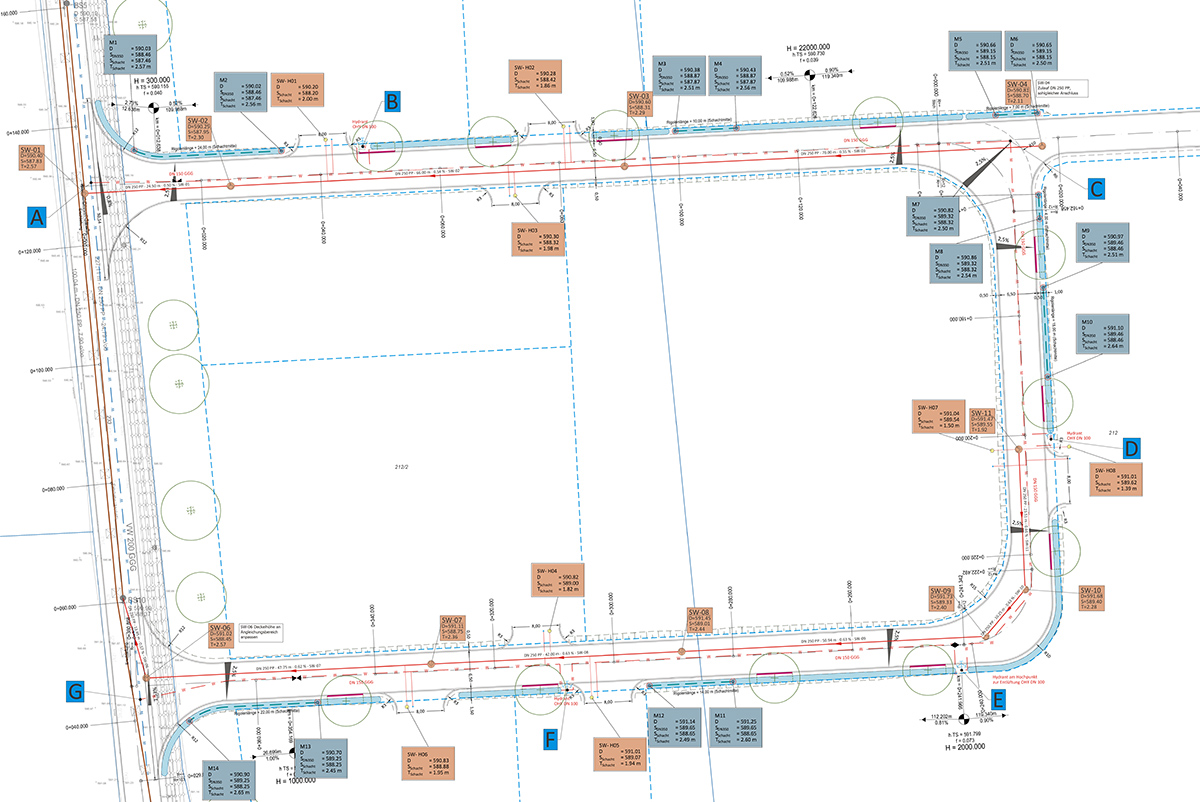 Leistungsumfang: Verkehrsanlagen Lph 1-9, Ingenieurbauwerke Lph 1-9 (Schmutzwasserkanal, Wasserleitung)